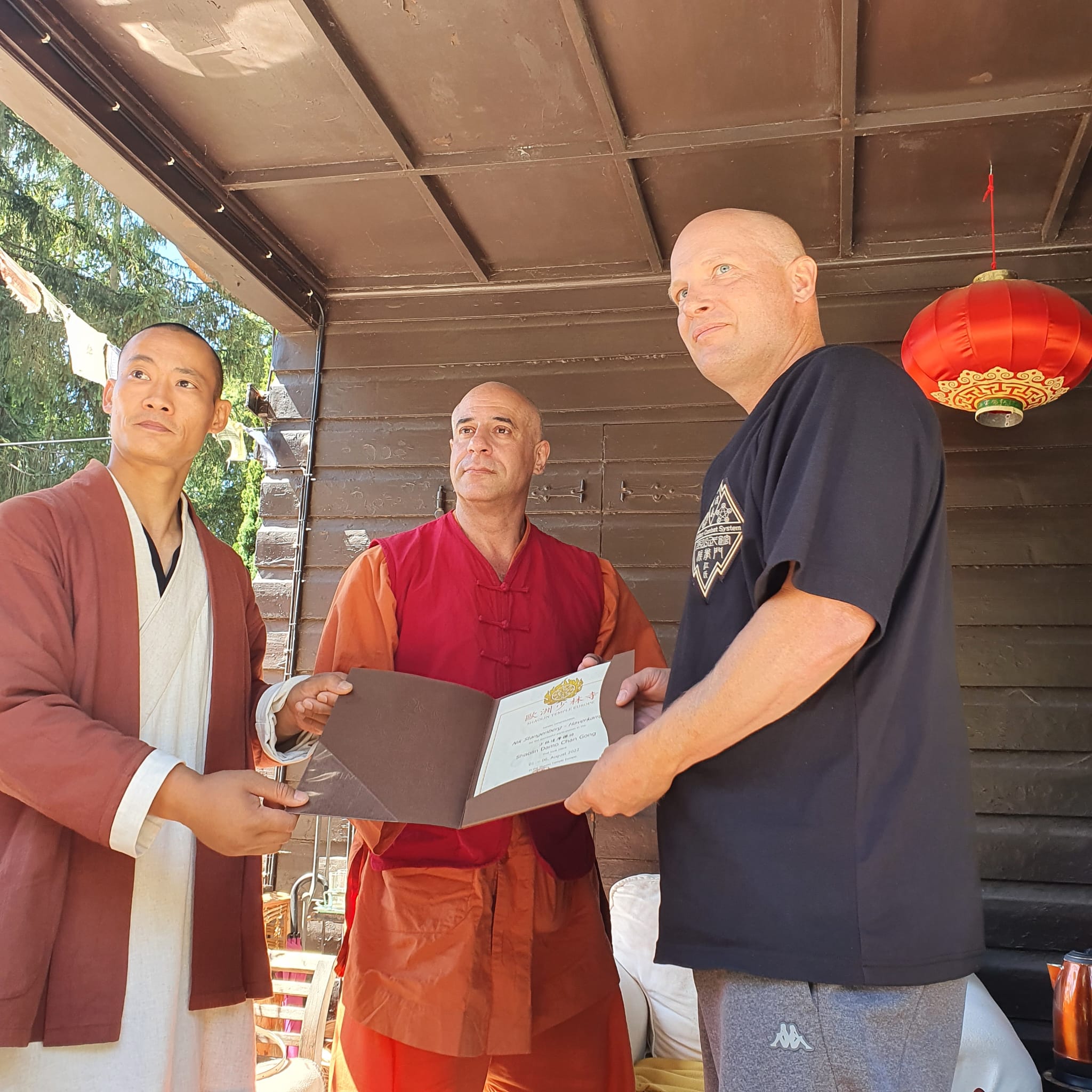 Master Nik receiving certification from Grandmaster Jiang Yu Shan and Master Shi Heng Yi